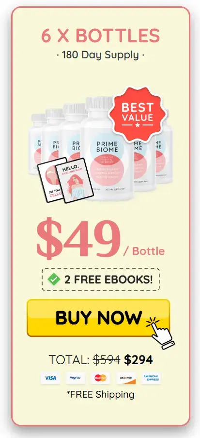 At this moment you can order PrimeBiome supplement for 96% OFF + FREE Shipping. This is a Limited-Time Offer and it won’t be available for long.
